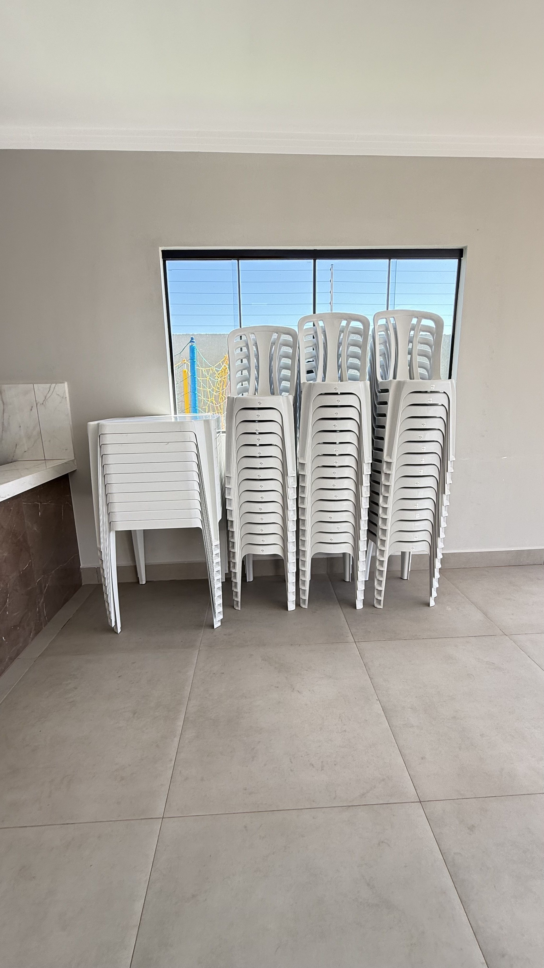 ✅ Espaço gourmet completo (geladeira, freezer, mesas, cadeiras, pratos, talheres, espetos, botijão etc.)